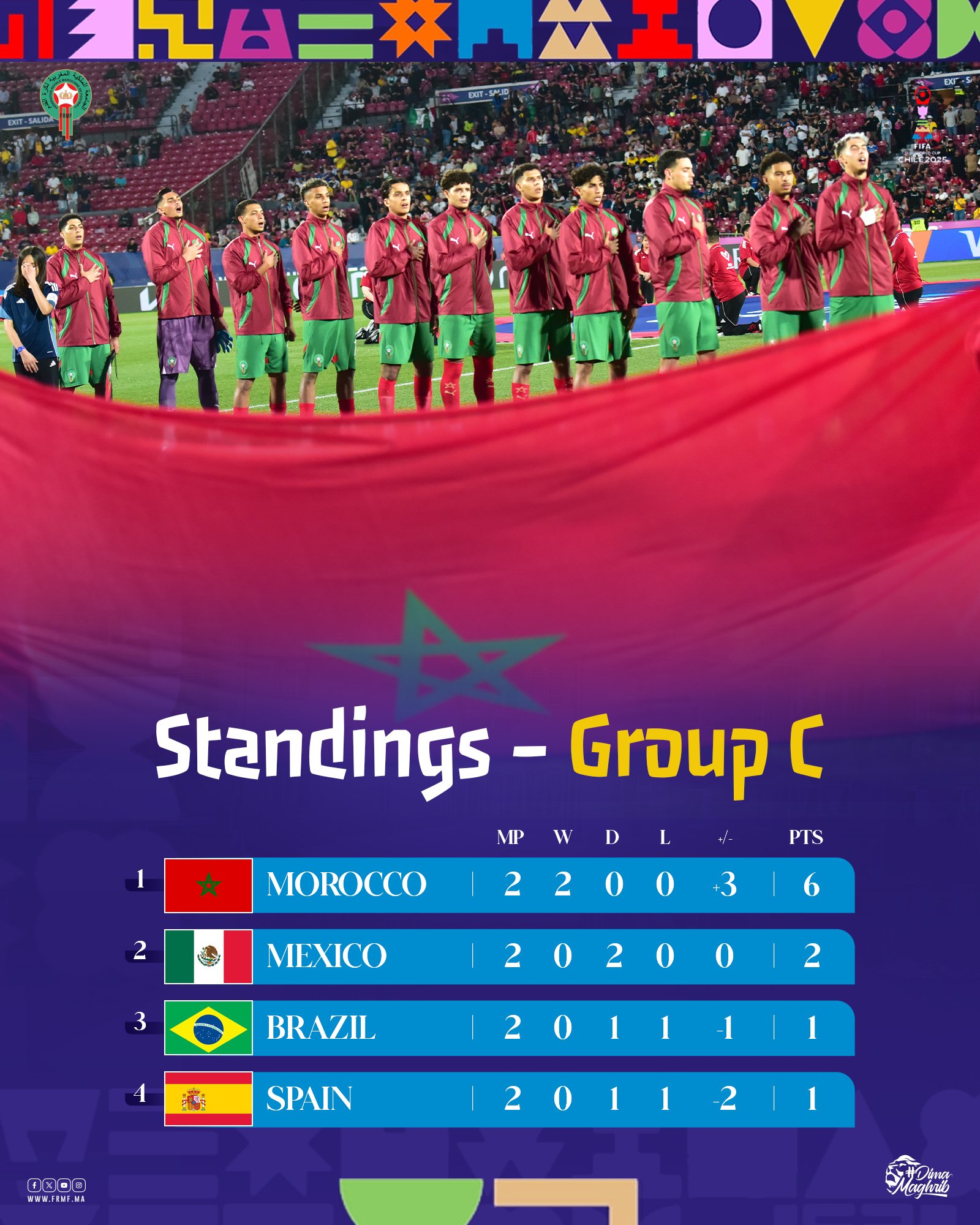 Gessine Yassine, déjà en vue dès le premier match, a été à nouveau décisif, guidant l’équipe de Mohamed Ouahbi vers le succès. Le Maroc affrontera le Mexique samedi, pour conforter sa position de leader et préparer au mieux les quarts de finale.