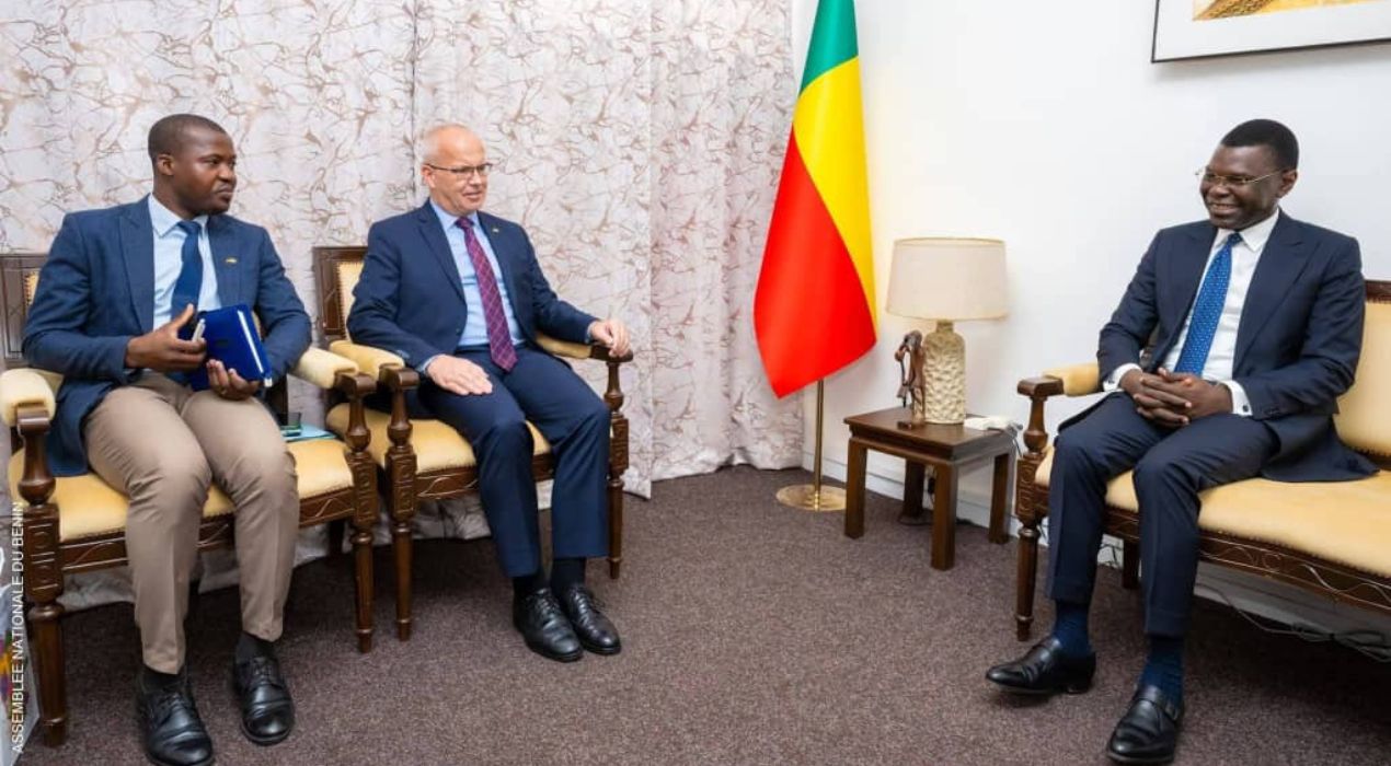 Le président de l’Assemblée nationale du Bénin, Joseph Fifamin Djogbénou, a accordé une audience, mardi 24 mars 2026 au Palais des Gouverneurs à Porto-Novo, à l’ambassadeur de la République fédérale d’Allemagne près le Bénin, Stefan Buchwald. Les échanges ont porté sur le renforcement de la coopération parlementaire et la consolidation des relations bilatérales entre les deux pays, avec un accent particulier sur l’importance du portefeuille global de coopération estimé à près de 500 millions d’euros.